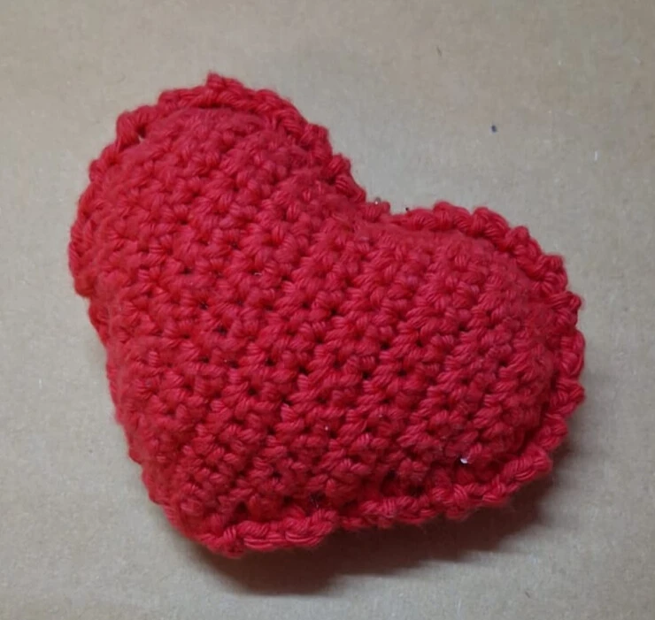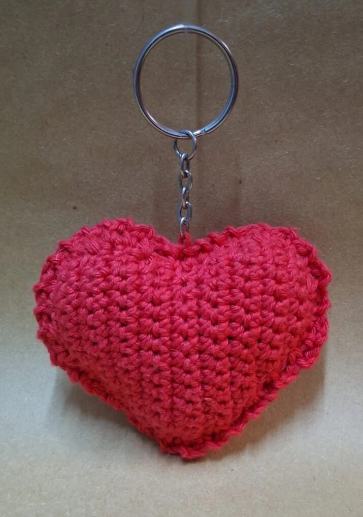Está tejido a mano en hilo de algodón rojo intenso, con una técnica 3D (amigurumi) que lo hace gordito, suave y súper "apretable". A diferencia de los llaveros planos, este corazón tiene presencia y textura.