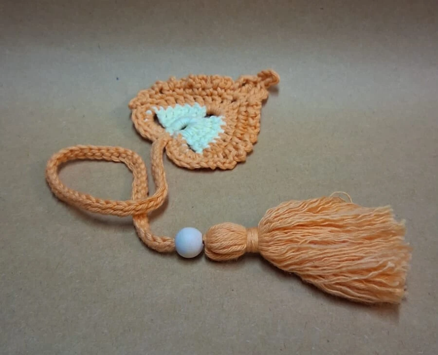 Están confeccionados en hilo de algodón, con un diseño de hoja estilizada en un extremo y una larga cadena que termina en una borla suave (tassel) que queda colgando fuera del libro, decorando tu mesa de luz o biblioteca.